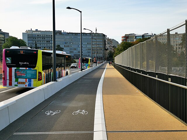 - jonction avec la partie Luxembourgeoise : on passe sur un trottoir partagé, avec une combinaison cyclo-piétonne. Le stationnement sera supprimée côté sud.